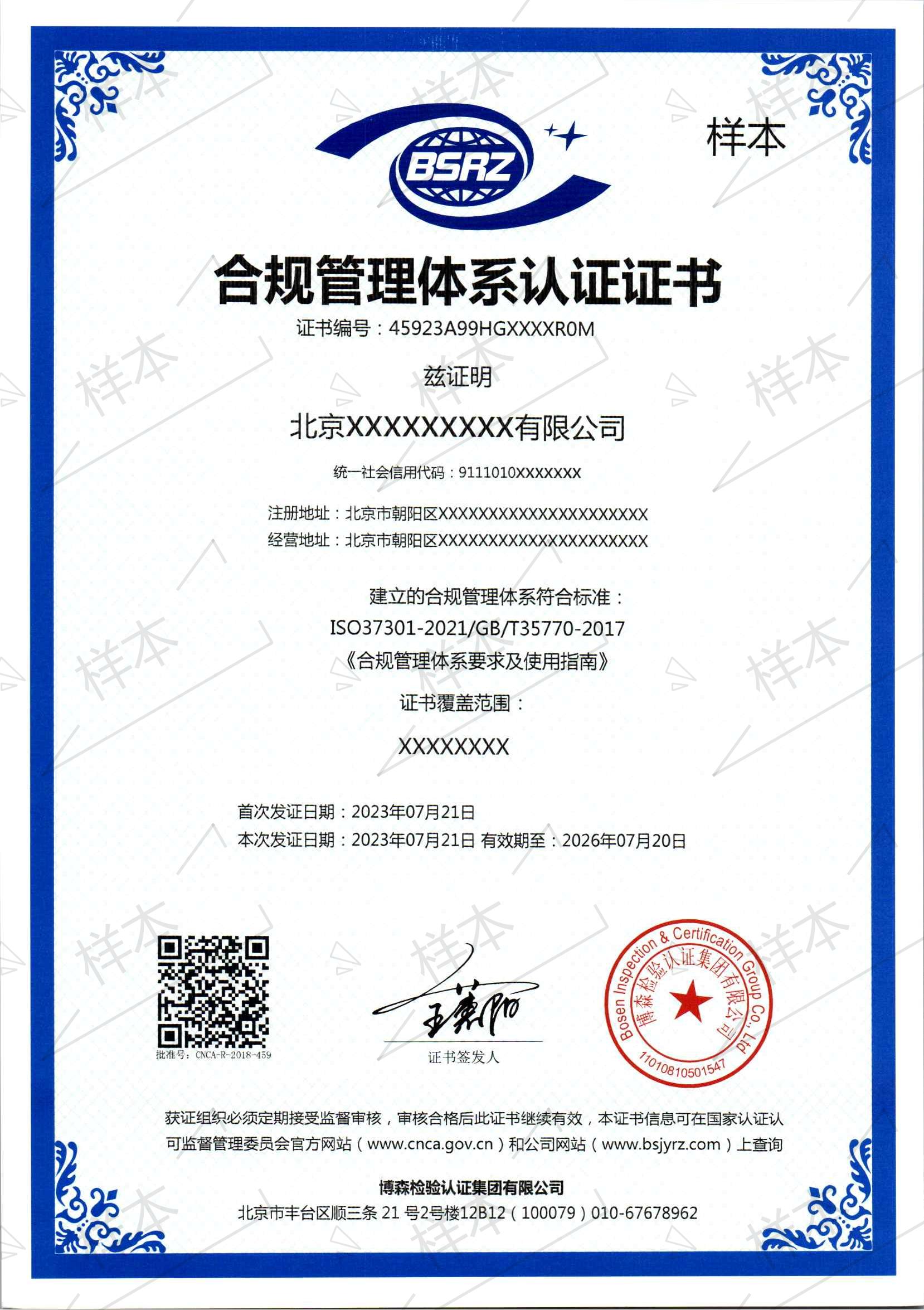 合规管理体系认证证书