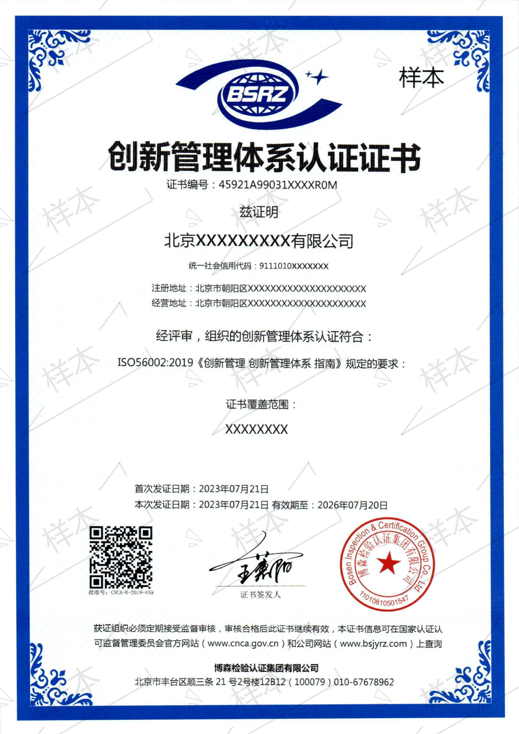 创新管理体系认证证书