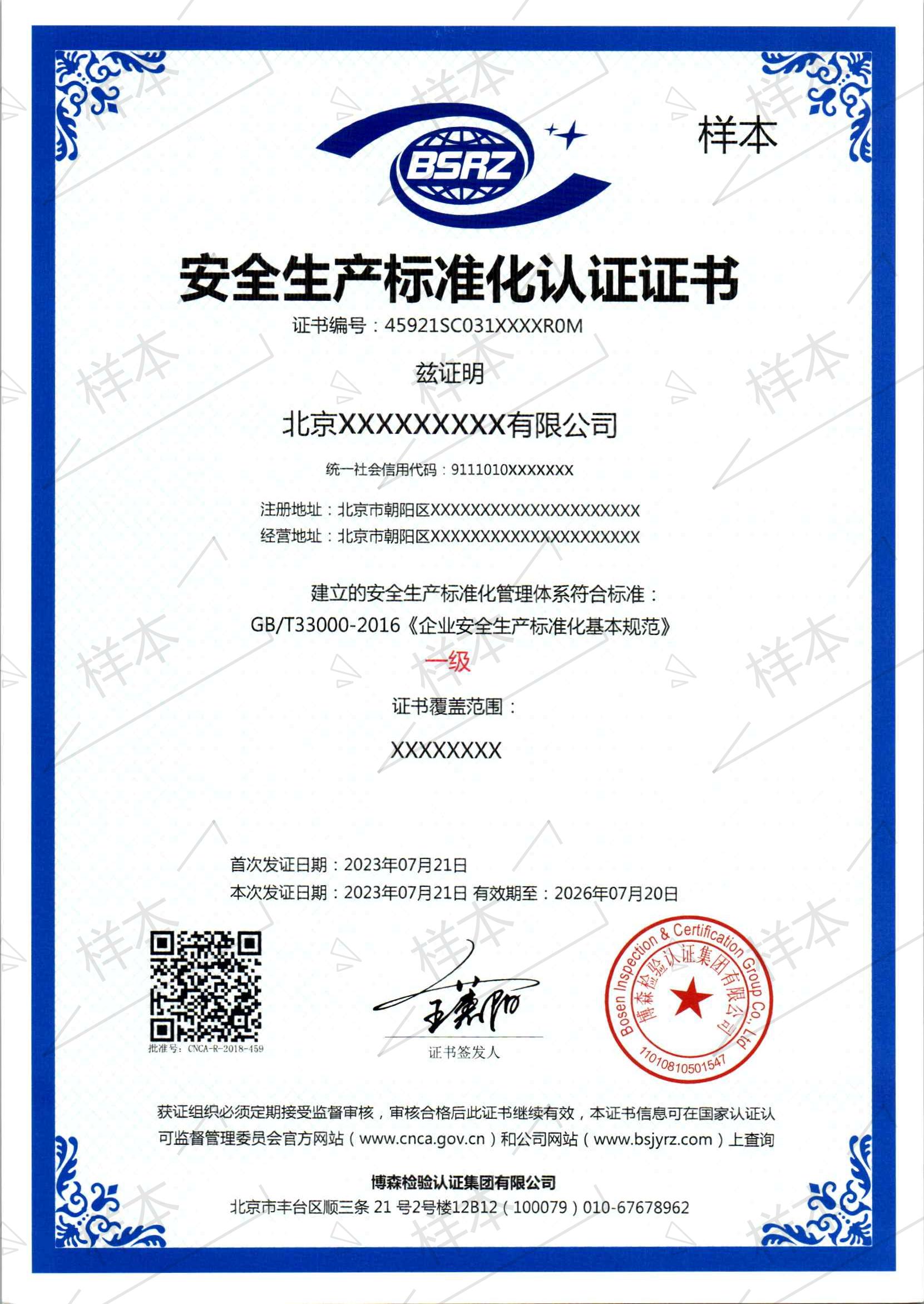 安全生产标准化认证证书