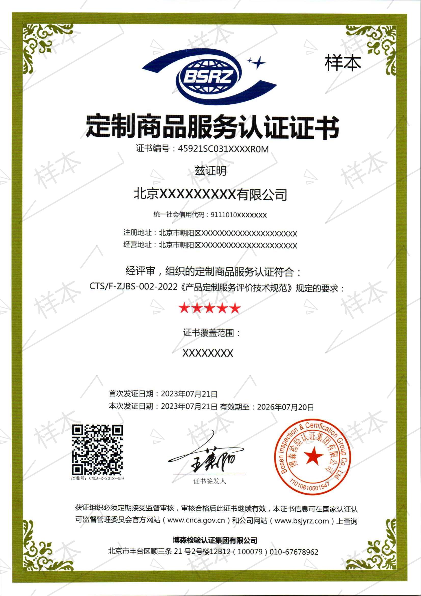 定制商品服务证书