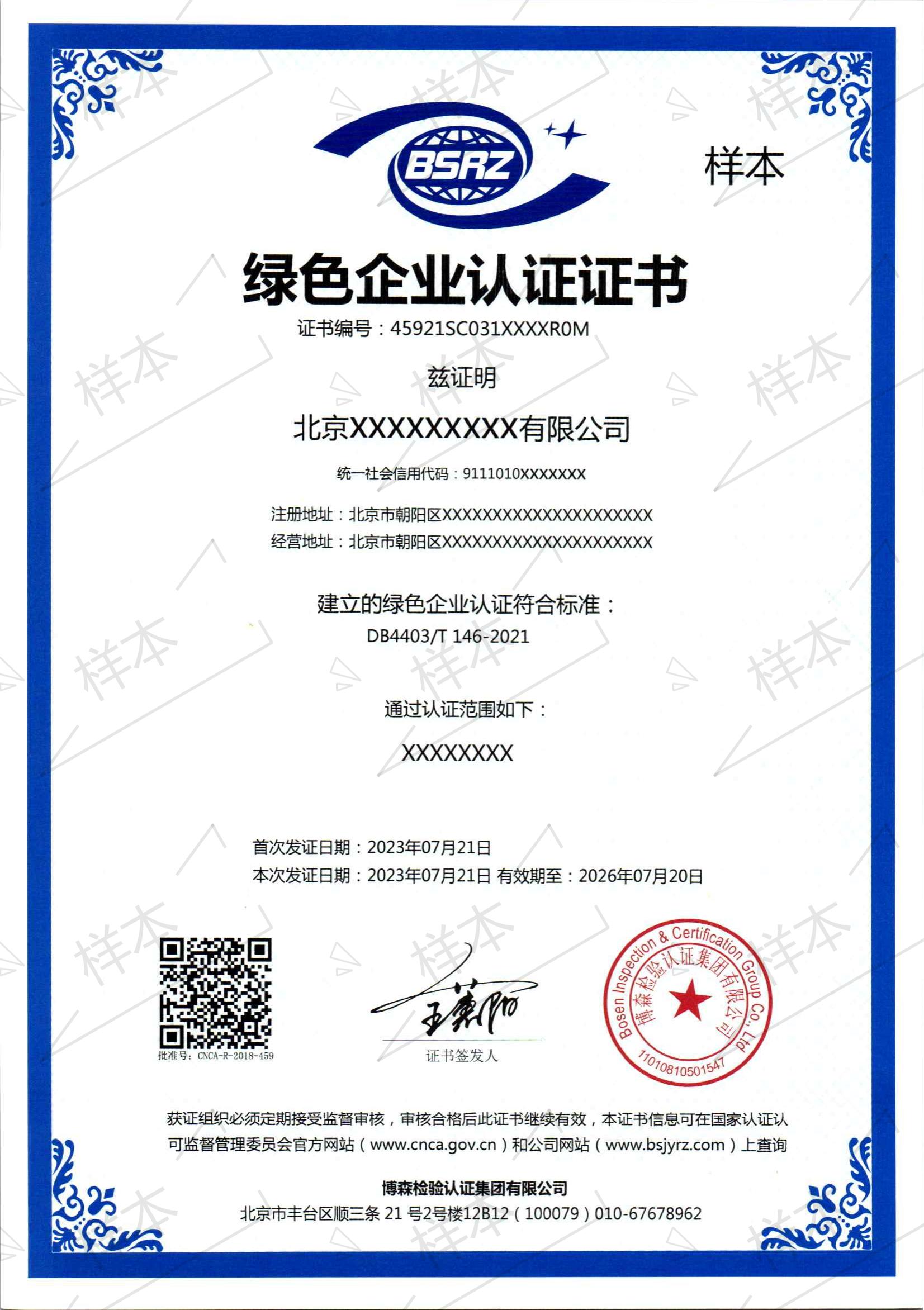 绿色企业认证证书