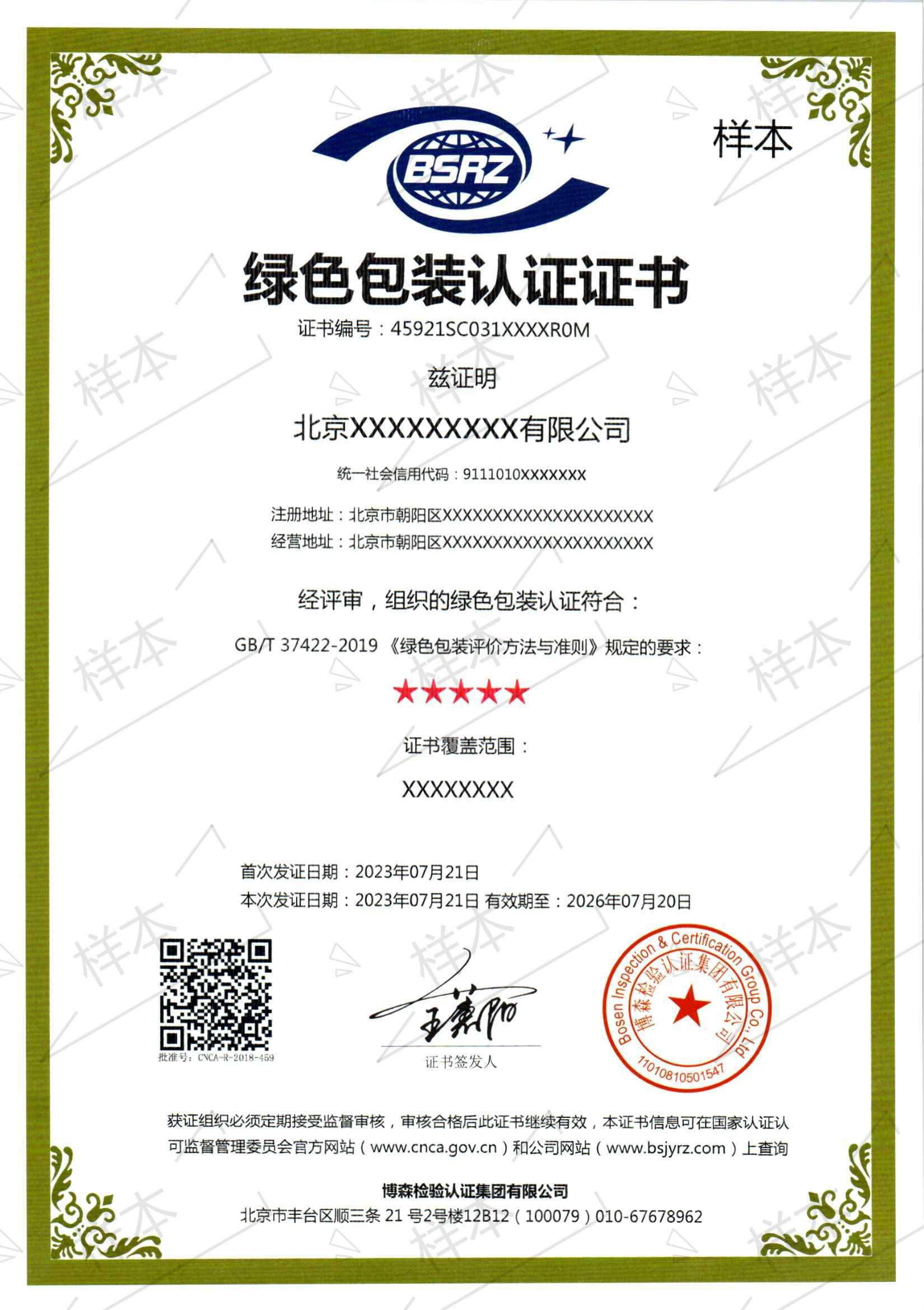 绿色包装认证证书